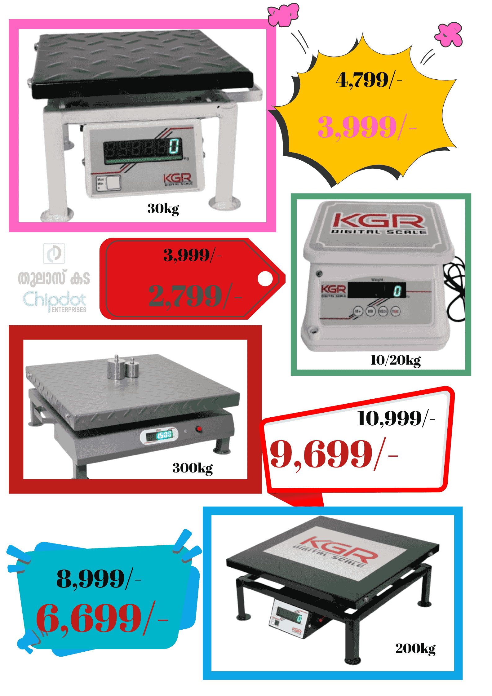 കേരള വെയ്റ്റിംഗ് ഇൻഡസ്ട്രിയിൽ പരിചയസമ്പന്നനായതിനാൽ, ഞങ്ങളുടെ ഉൽപ്പന്നങ്ങളിലെ ഡിസൈൻ, ടെക്നോളജി നവീകരണം, ചെലവ്, വിൽപ്പനാനന്തര പിന്തുണ എന്നീ ആശയങ്ങളിൽ തികച്ചും ഉറച്ചതാണ്. എല്ലാ 4 ഘടകങ്ങളും അടിസ്ഥാനപരമായി ഞങ്ങളുടെ ഉപഭോക്താക്കളുടെ താൽപ്പര്യം സംരക്ഷിക്കുന്നതിനുള്ള 4 തൂണുകളായി പ്രവർത്തിക്കുന്നു. അതുകൊണ്ട് ഒരിക്കലും ഞങ്ങൾ വിട്ടുവീഴ്ച ചെയ്യുകയില്ല. കേരള വെയ്യിംഗ് ഇൻഡസ്ട്രി അടിസ്ഥാന പരിഹാരങ്ങളിൽ നിന്ന് സ്മാർട്ട് വെയ്റ്റിംഗ് സൊല്യൂഷനുകളിലേക്കുള്ള പരിവർത്തനത്തിനായി വലിയ പ്രതീക്ഷയിലാണ്, അത് നടപ്പിലാക്കുമെന്ന് ഞങ്ങൾ പ്രതിജ്ഞ ചെയ്യുന്നു. ക്ലൗഡ് അധിഷ്ഠിത പോസ്കെയിലുകൾ, ബാർകോഡ് സ്കെയിലുകൾ, വ്യാവസായിക സ്കെയിലുകൾ, അനലിറ്റിക്കൽ സ്കെയിലുകൾ എന്നിവ പോലുള്ള ഇലക്ട്രോണിക് വെയ്റ്റിംഗ്, ബില്ലിംഗ് ഉപകരണങ്ങളിൽ വൈദഗ്ദ്ധ്യം നേടിയ മാർക്കറ്റ് ഡീലറാണ് ചിപ്പ്ഡോറ്റ് എൻ്റർപ്രൈസസ്. തൂക്ക വ്യവസായത്തിൻ്റെ ആശയം മാറ്റുന്നതിൽ ഞങ്ങൾക്ക് പ്രധാന പങ്കുണ്ട്. ഞങ്ങളുടെ പ്രധാന കാഴ്ചപ്പാട് പരമ്പരാഗത തൂക്കം ആശയം നവീകരിക്കുകയും സാങ്കേതിക പിന്തുണയുള്ള കൃത്യമായ അളവുകൾ ഉപയോഗിച്ച് തൂക്ക യന്ത്രങ്ങളെ പരിചയപ്പെടുത്തുകയും അതുവഴി നമ്മുടെ രാജ്യത്തെ ഒരു ഡിജിറ്റൽ ഇന്ത്യയിലേക്ക് മാറ്റുകയും ചെയ്യുക എന്നതാണ്.