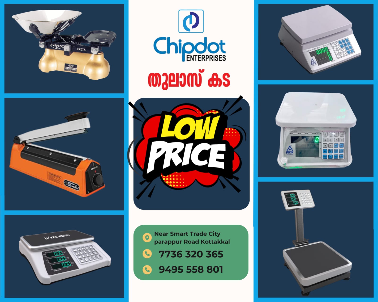 കേരള വെയ്റ്റിംഗ് ഇൻഡസ്ട്രിയിൽ പരിചയസമ്പന്നനായതിനാൽ, ഞങ്ങളുടെ ഉൽപ്പന്നങ്ങളിലെ ഡിസൈൻ, ടെക്നോളജി നവീകരണം, ചെലവ്, വിൽപ്പനാനന്തര പിന്തുണ എന്നീ ആശയങ്ങളിൽ തികച്ചും ഉറച്ചതാണ്. എല്ലാ 4 ഘടകങ്ങളും അടിസ്ഥാനപരമായി ഞങ്ങളുടെ ഉപഭോക്താക്കളുടെ താൽപ്പര്യം സംരക്ഷിക്കുന്നതിനുള്ള 4 തൂണുകളായി പ്രവർത്തിക്കുന്നു. അതുകൊണ്ട് ഒരിക്കലും ഞങ്ങൾ വിട്ടുവീഴ്ച ചെയ്യുകയില്ല. കേരള വെയ്യിംഗ് ഇൻഡസ്ട്രി അടിസ്ഥാന പരിഹാരങ്ങളിൽ നിന്ന് സ്മാർട്ട് വെയ്റ്റിംഗ് സൊല്യൂഷനുകളിലേക്കുള്ള പരിവർത്തനത്തിനായി വലിയ പ്രതീക്ഷയിലാണ്, അത് നടപ്പിലാക്കുമെന്ന് ഞങ്ങൾ പ്രതിജ്ഞ ചെയ്യുന്നു. ക്ലൗഡ് അധിഷ്ഠിത പോസ്കെയിലുകൾ, ബാർകോഡ് സ്കെയിലുകൾ, വ്യാവസായിക സ്കെയിലുകൾ, അനലിറ്റിക്കൽ സ്കെയിലുകൾ എന്നിവ പോലുള്ള ഇലക്ട്രോണിക് വെയ്റ്റിംഗ്, ബില്ലിംഗ് ഉപകരണങ്ങളിൽ വൈദഗ്ദ്ധ്യം നേടിയ മാർക്കറ്റ് ഡീലറാണ് ചിപ്പ്ഡോറ്റ് എൻ്റർപ്രൈസസ്. തൂക്ക വ്യവസായത്തിൻ്റെ ആശയം മാറ്റുന്നതിൽ ഞങ്ങൾക്ക് പ്രധാന പങ്കുണ്ട്. ഞങ്ങളുടെ പ്രധാന കാഴ്ചപ്പാട് പരമ്പരാഗത തൂക്കം ആശയം നവീകരിക്കുകയും സാങ്കേതിക പിന്തുണയുള്ള കൃത്യമായ അളവുകൾ ഉപയോഗിച്ച് തൂക്ക യന്ത്രങ്ങളെ പരിചയപ്പെടുത്തുകയും അതുവഴി നമ്മുടെ രാജ്യത്തെ ഒരു ഡിജിറ്റൽ ഇന്ത്യയിലേക്ക് മാറ്റുകയും ചെയ്യുക എന്നതാണ്.